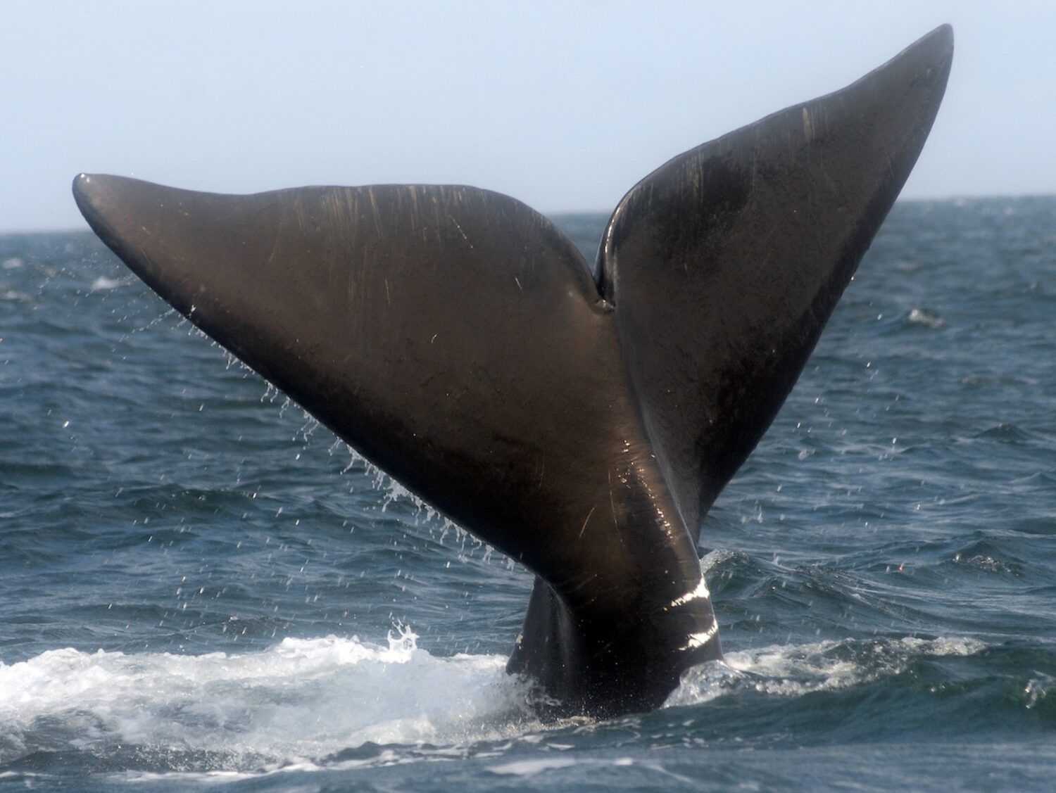 A North Atlantic right whale fluke. Note the white scarring on the tail stock (peduncle), likely from plastic ropes associated with lobster and crab traps. Photo Credit: ID 8969557 Jim Cornall Dreamstime
